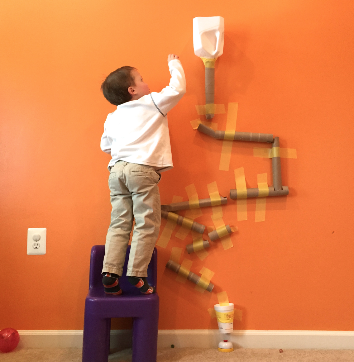 Knikkerbaan: Doorgesneden wc-rolletjes zijn ideaal materiaal om een knikkerbaan te maken. Wat tape tegen een groot raam of stuk karton en laat die knikkers maar rollen. Nog wat ander materiaal liggen waar je een knikker op of in kan laten rollen? Ideaal voor de special effects van je knikkerbaan.